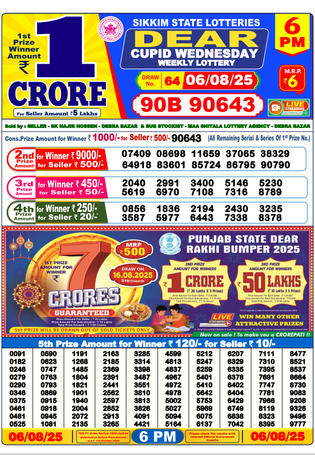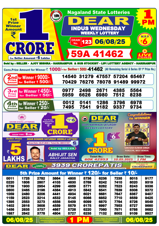 Dhankesari Lottery is one of the most popular and widely recognized state lotteries in India. The lottery tickets are published primarily through daily printed and online results systems across the country, especially in West Bengal, Nagaland, Sikkim, and various states. It attracts thousands of participating ticket buyers with multiple prizes. The lottery tickets are played three times a day. The first draw was held at 1:00 pm, the second draw was held at 6 pm, and last of the day, the Third draw was held at 8:00 pm.