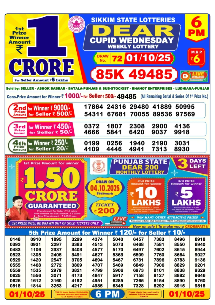 Evening: Sikkim State Dhankesari Evening Result will have a maximum of 20,000000 lottery tickets in 80 to 99 serial numbers and Series A, B, C, D, E, F, G, H, I, J, K, and Numbers from 00000 to 99999.